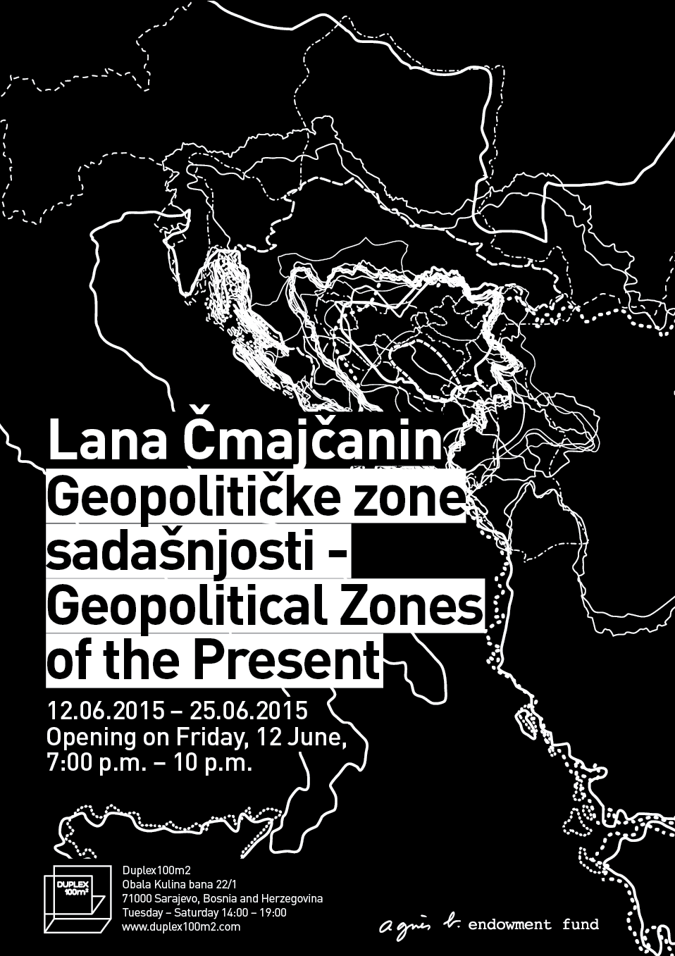 Through centuries, military and political inscriptions of statehood and sovereignty into the landscape of geographic maps have become stagnant strongholds of factual history, fixtures which are never oppugned, in spite of perpetual shifts in the dominant positions of power commissioning their production. Lana Čmajčanin applies the methods of distillation, overlapping and reduction of the content of maps, while utilizing the usual cartographic tools and techniques of etching, drawing, reproduction and representation. The artist thus creates a space which contests the geopolitical historicity of the borders of Bosnia and Herzegovina, from the Roman Empire all the way to the Dayton Agreement.